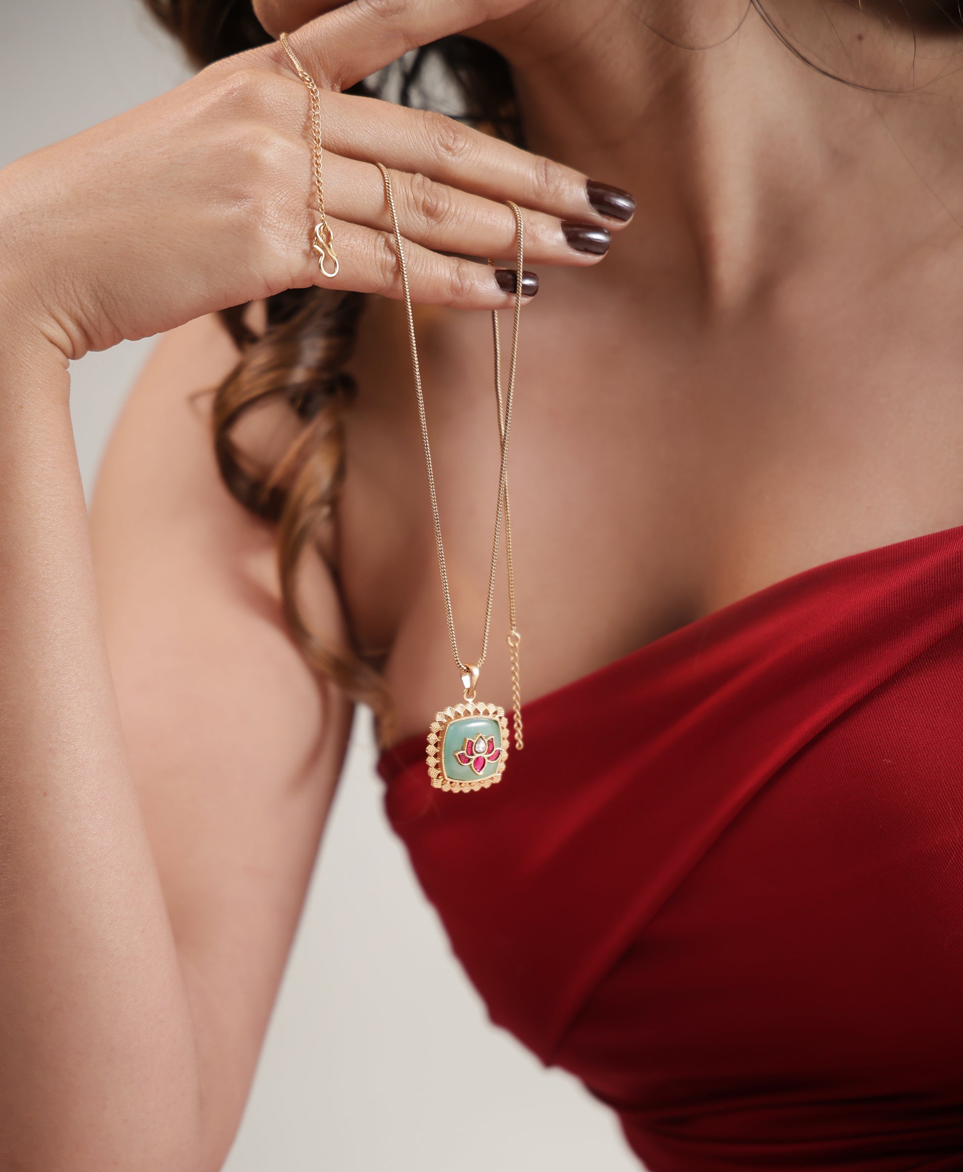 Designed for evenings filled with music, laughter, and compliments. The lotus motif and enamel detailing bring a handcrafted touch to your everyday festive wardrobe.