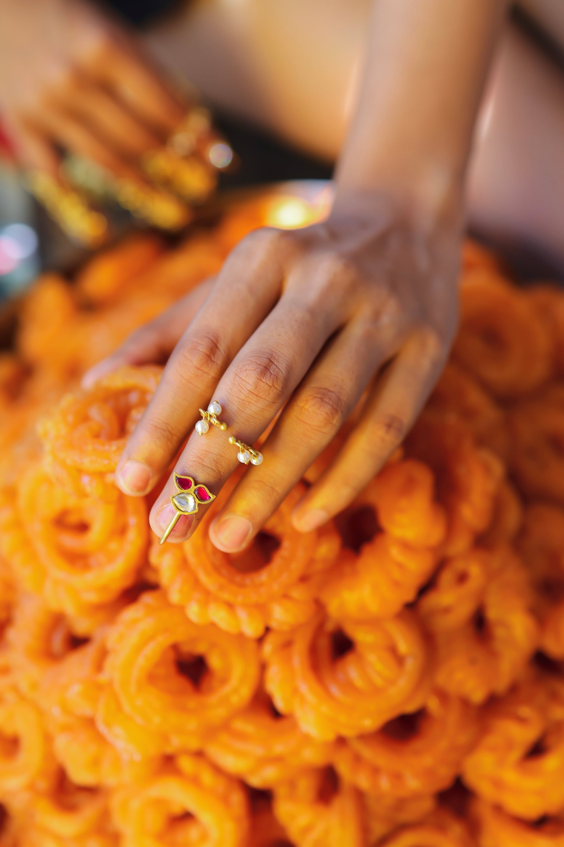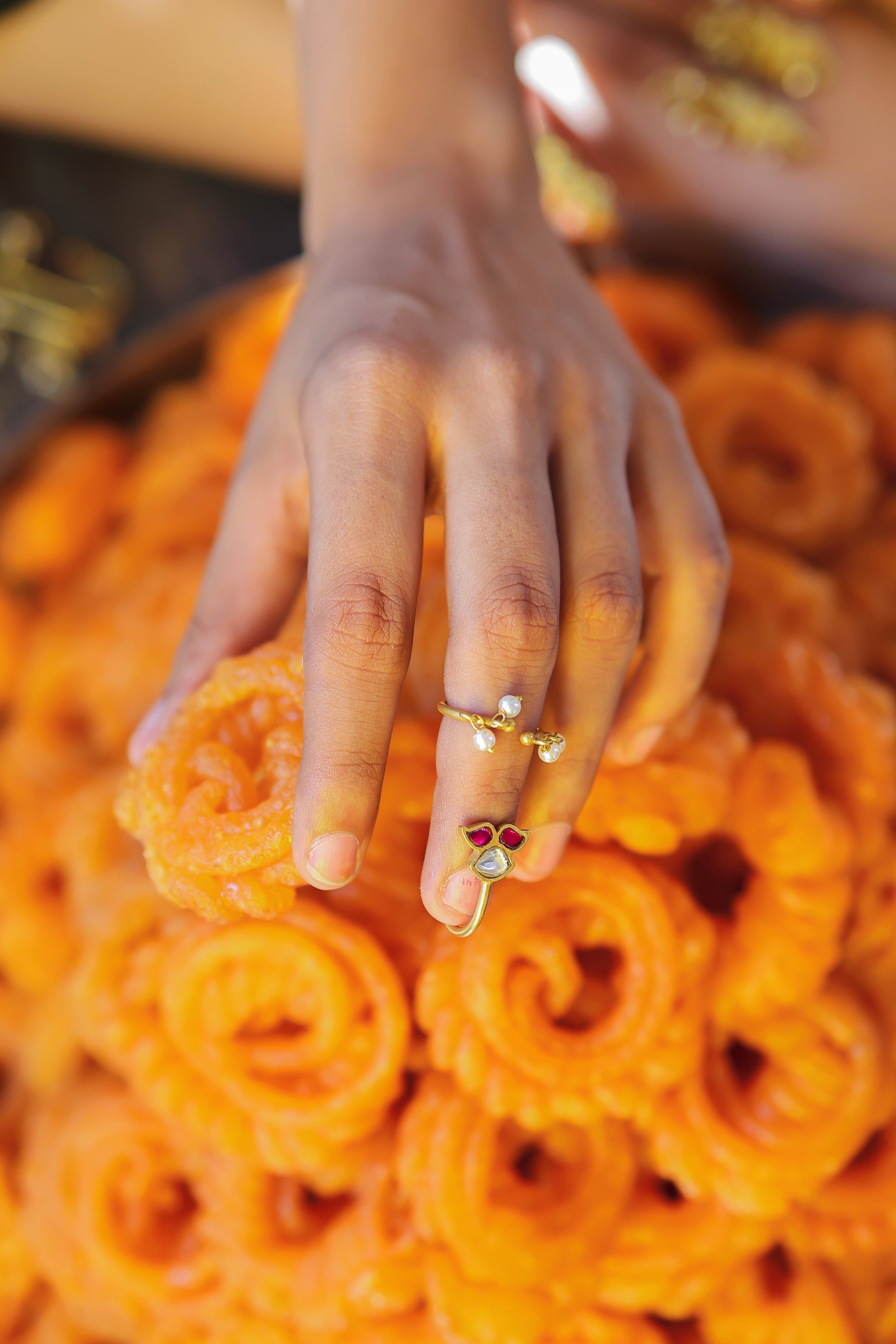 A bold and stylish fingernail accessory designed to elevate your hand jewellery look. The Ruby Fingernail features vibrant red stones set in a sleek gold-tone frame with a delicate white stone accent in the center. Its unique fingertip design elegantly covers the nail, creating a modern and eye-catching statement. Perfect for festive occasions, parties, and fashion styling, this piece adds a touch of glamour and uniqueness to your overall look.